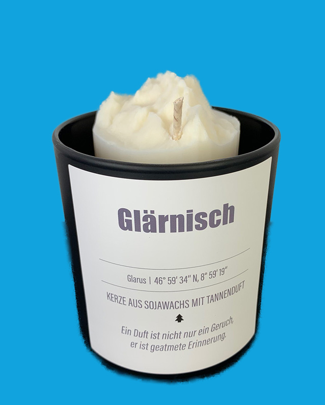 Nach der «Tödi»-Kerze leuchtet nun die neue Kerze vom Glärnisch. Eine edle Sojawachskerze mit 3-D-Bergpanorama, die nach Tannenwald duftet. Ein Duft ist nicht nur ein Geruch, er ist geatmete Erinnerung. |